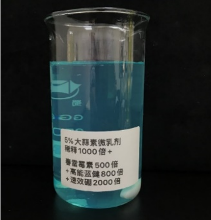 圖 5%大蒜素微乳劑與2%春雷霉素混配性