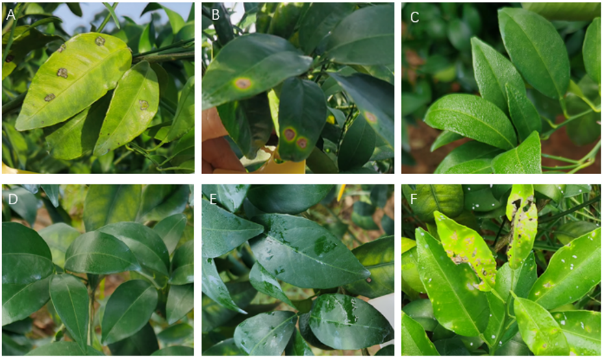 同時(shí),針對(duì)柑橘潰瘍病田間試驗(yàn)結(jié)果表明,兩次施藥后21天,對(duì)照藥劑2%春雷霉素稀釋500倍液平均防效為50.82%。2%春雷霉素稀釋600倍液+5%大蒜素稀釋1000倍液平均防效為76.80%。2%春雷霉素稀釋800倍液+5%大蒜素稀釋800倍液平均防效為81.96%。2%春雷霉素稀釋1000倍液+5%大蒜素稀釋600倍液平均防效為78.44%,減量增效效果顯著,2%春雷霉素減量超過30%,對(duì)病害防治效果提升20%以上。