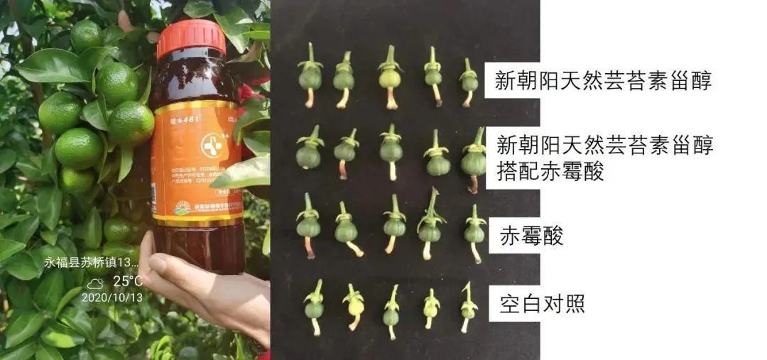 在雜柑的幼果膨大期使用天然蕓苔素+鈣鎂葉面肥能夠促進樹體補充鈣元素,果面光靚,減少裂果產生,預防日灼果。小編推薦:雜柑幼果膨大期,使用天然蕓苔素碩豐481?2000倍+多迎鈣鎂1000倍噴霧。與常規方案處理相比,此方案處理,果實直徑大、果面光亮,日灼果發生概率降低30%。
